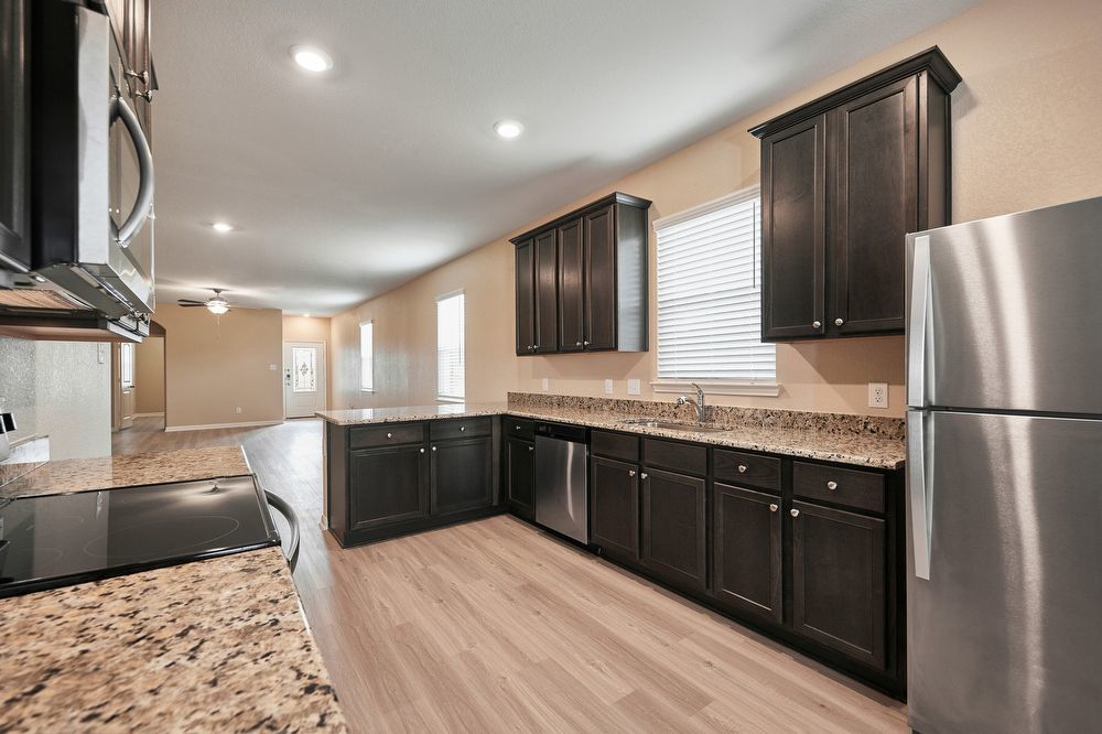 The Jasper showcases a stunning, chef-ready kitchen filled with stainless steel Whirlpool® appliances, polished granite countertops and sprawling counterspace. A huge living room and dining room provide entertaining space for your friends and family to enjoy a game night, watch party or family dinner. Take the party outside and enjoy a covered back patio and fully fenced, private back yard.