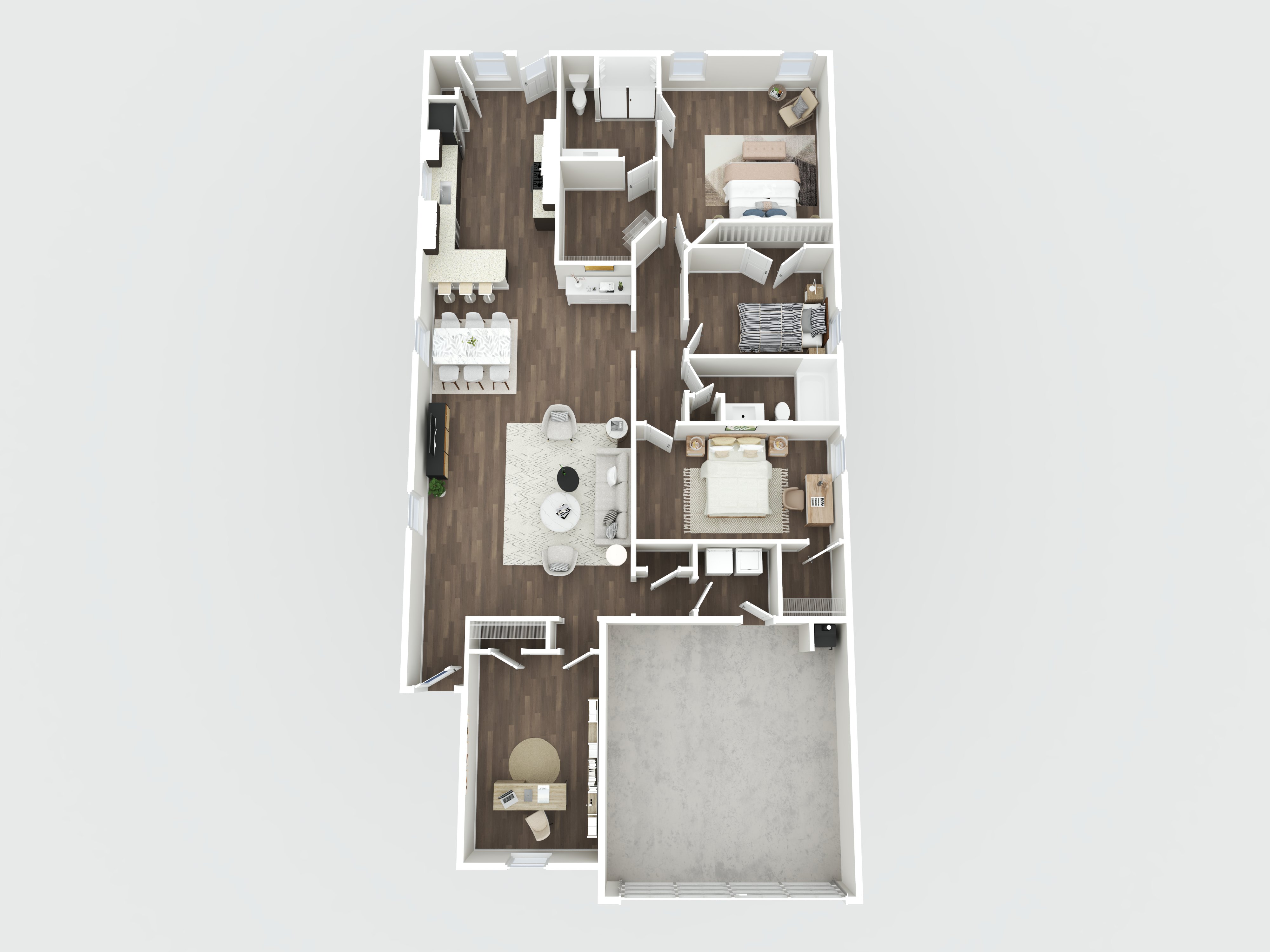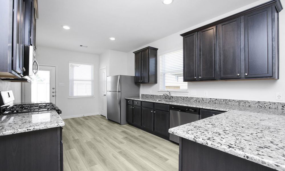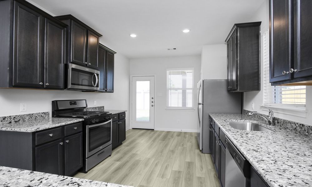 The Lily showcases a stunning kitchen filled with stainless-steel Whirlpool® appliances, polished granite countertops, recessed lighting, and a large single basin sink that will fit all of your pots and pans. A huge living room and dining room provide entertaining space for your friends and family to enjoy a game night, watch party or family dinner. Take the party outside and enjoy a covered back patio and fully fenced, private back yard.
