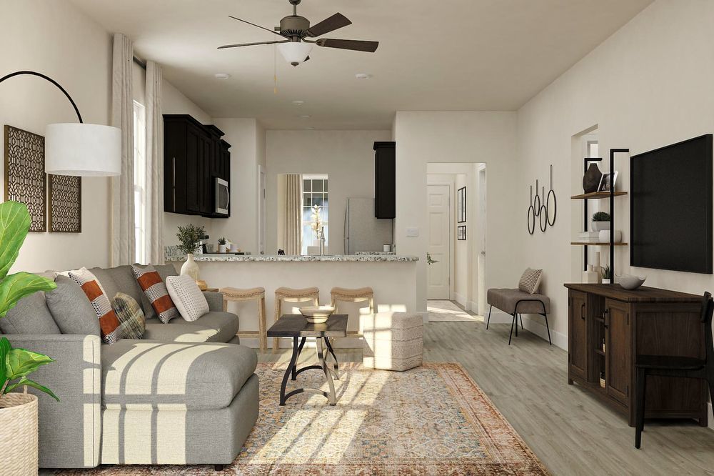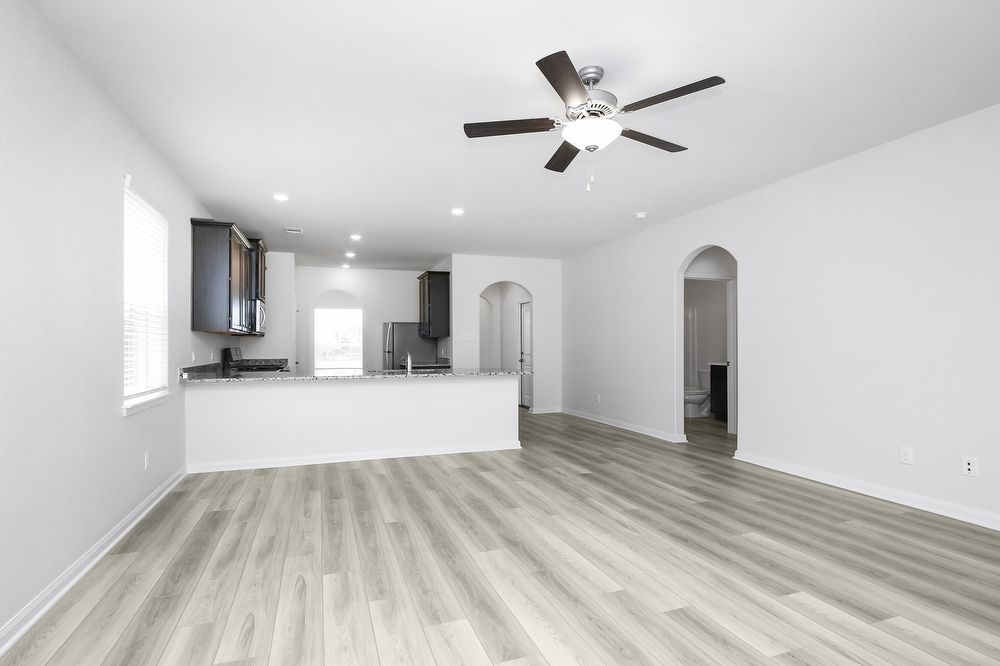 Style meets functionality in the 3-bedroom, 2-bath Clover plan from LGI Living. From the moment you step through the front door, the open and spacious layout of this single-story home unfolds and welcomes you to relax and unwind. The private dining room sets the stage for engaging conversation over meals, while the open kitchen and family room are perfect for hosting larger groups. The oversized covered back patio extends the entertaining space outdoors, giving you the perfect space for soaking in summer nights.