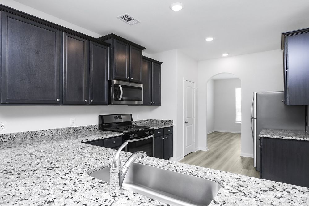 The Clover is outfitted with an array of designer upgrades, including a full suite of energy-efficient, stainless steel kitchen appliances, granite countertops, breakfast bar, stunning wood cabinetry with crown molding and recessed LED lighting. The large master bedroom in the Clover provides a restful retreat with a large soaker tub, walk-in shower, and expansive walk-in closet.