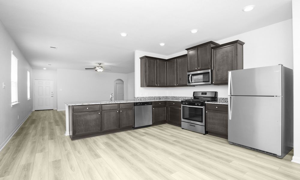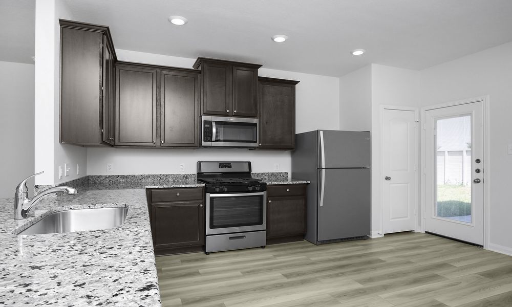 Designed with you in mind, the Acacia floor plan by LGI Living is a single-story home that offers three spacious bedrooms, open entertaining areas, and comes outfitted with an impressive selection of upgrades. The chef-ready kitchen includes stunning wood cabinetry, granite countertops, a full suite of stainless steel, energy-efficient Whirlpool® appliances, an undermount sink and luxury vinyl plank flooring.
