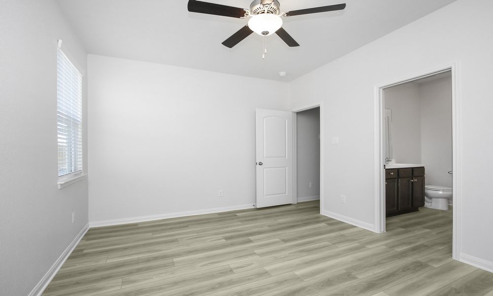 You will love coming home to the master retreat that features two large windows with views of the private, fully fenced back yard. The attached bath is equipped with a large countertop, dual shower and bathtub, and a large walk-in closet for all of your storage needs.
