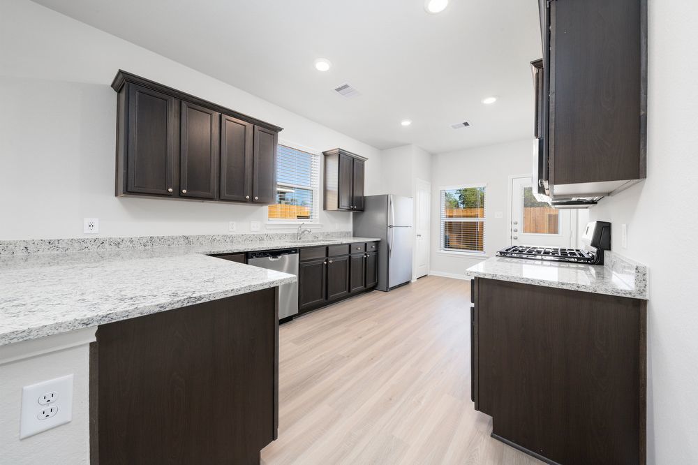 The Lily showcases a stunning, chef-ready kitchen filled with stainless steel Whirlpool® appliances, polished granite countertops and sprawling counterspace. A huge living room and dining room provide entertaining space for your friends and family to enjoy a game night, watch party or family dinner. Take the party outside and enjoy a covered back patio and fully fenced, private back yard.