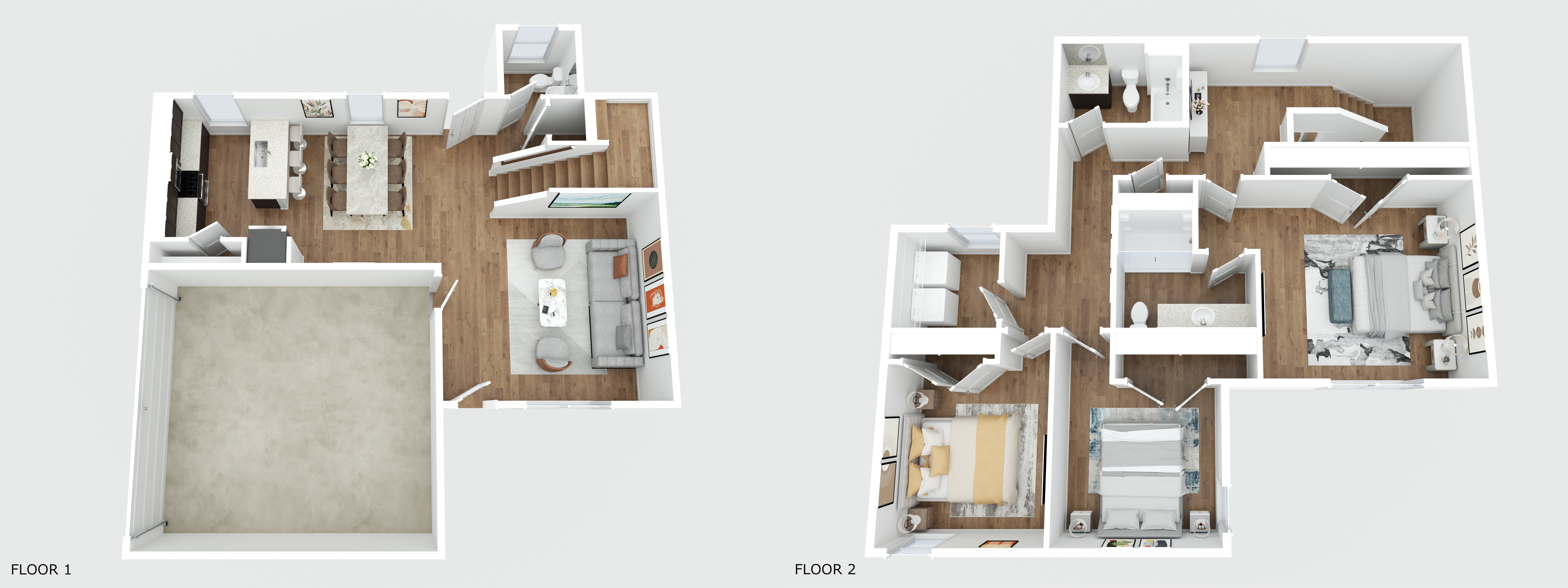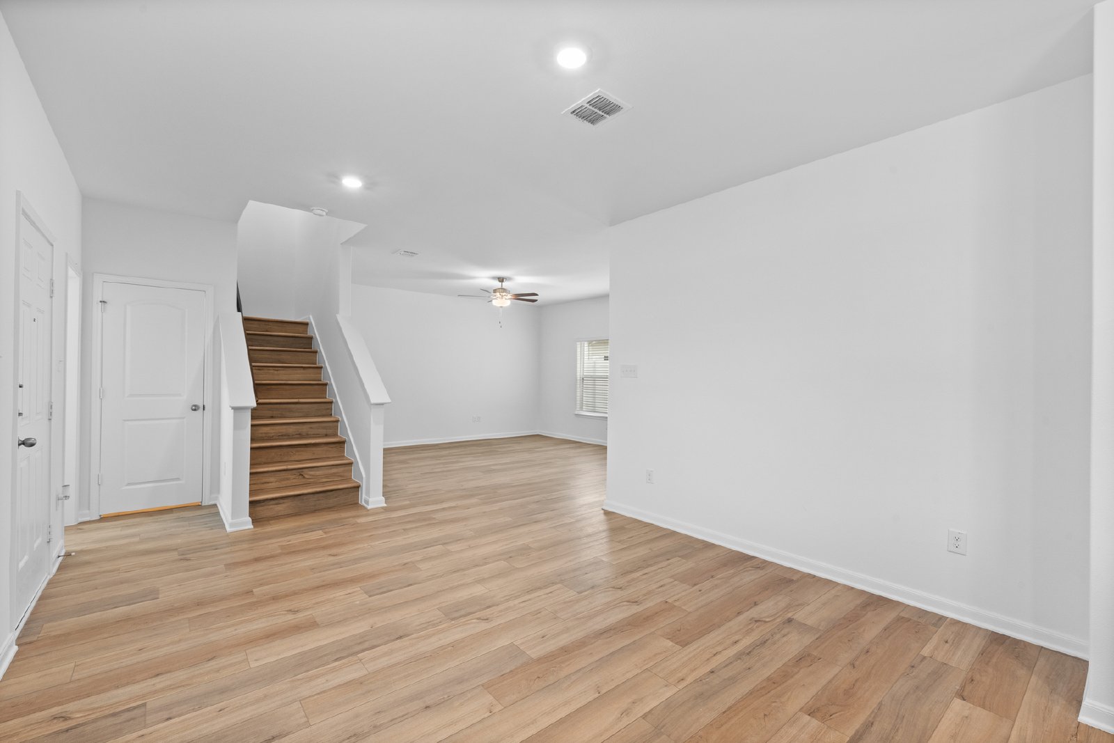The Harris plan offers a great amount of space for families of all sizes. On the main floor, you will love the openness of the family room, dining room, and kitchen, creating a warm, inviting environment. Upstairs, you will love the addition of the loft, perfect for a play space for the kids, or a reading nook!