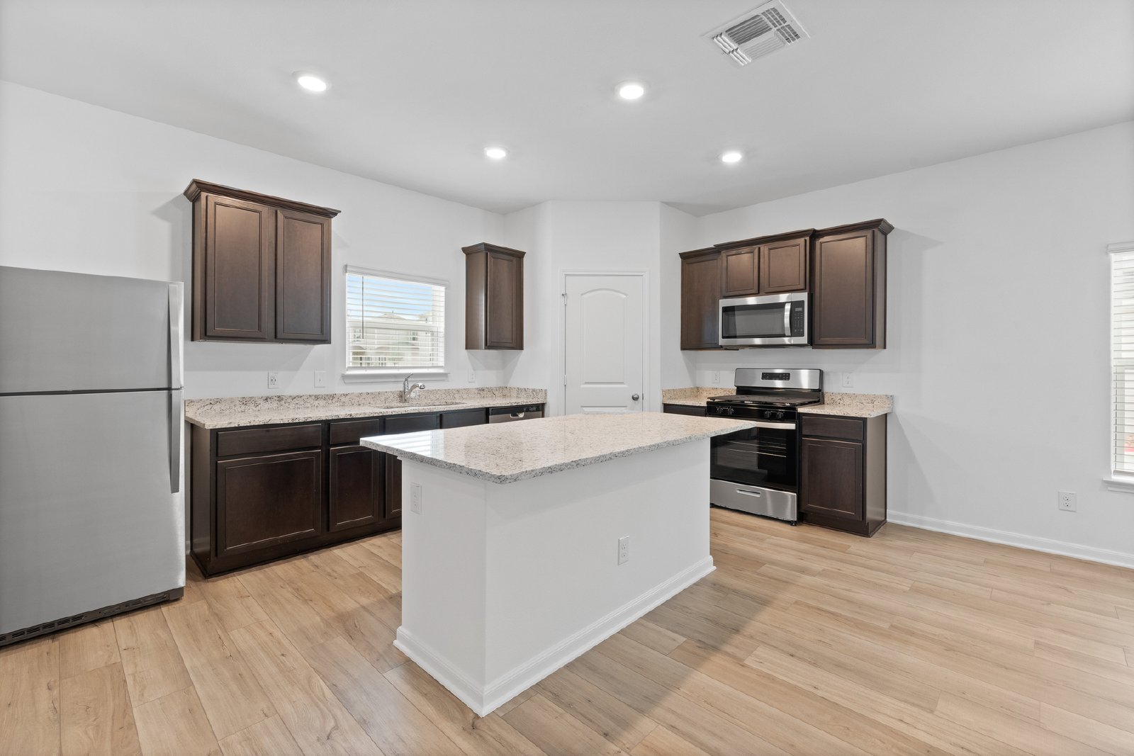 One of the most sought-after features of the Ralston plan is the stunning, chef-ready kitchen. Complete and ready from the moment you move in, this kitchen comes with a full suite of stainless steel appliances, glimmering granite countertops, designer wood cabinetry, and the added space of a center island. Additionally, the kitchen is open to the spacious dining room, creating an ideal layout for entertaining. Need more space for storage? Whether it’s for your winter clothes, children’s toys, or old memorabilia, the Ralston plan has plenty of space for all your storage needs. Enjoy conveniently located linen closets throughout the home as well as generously sized closets in each bedroom!