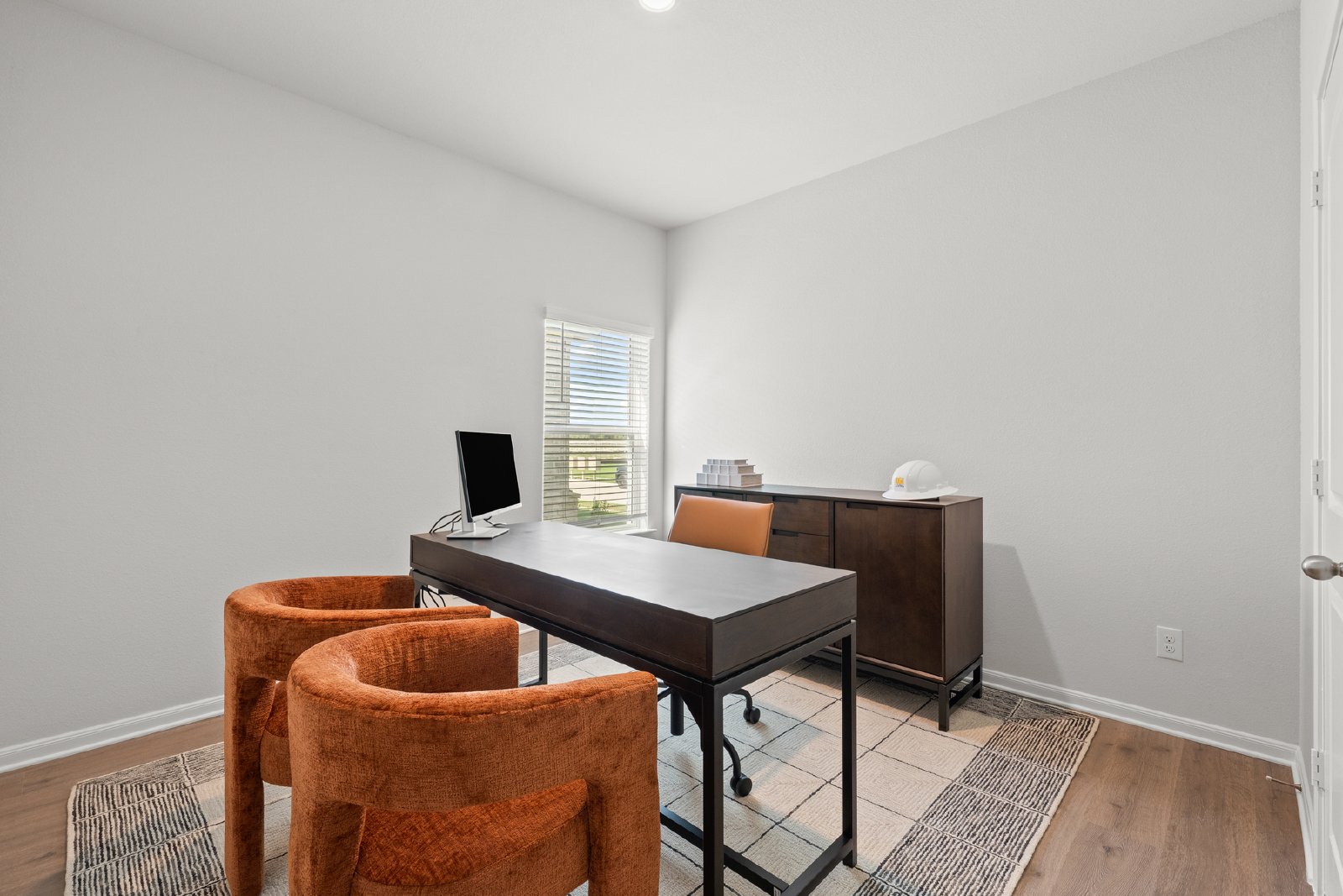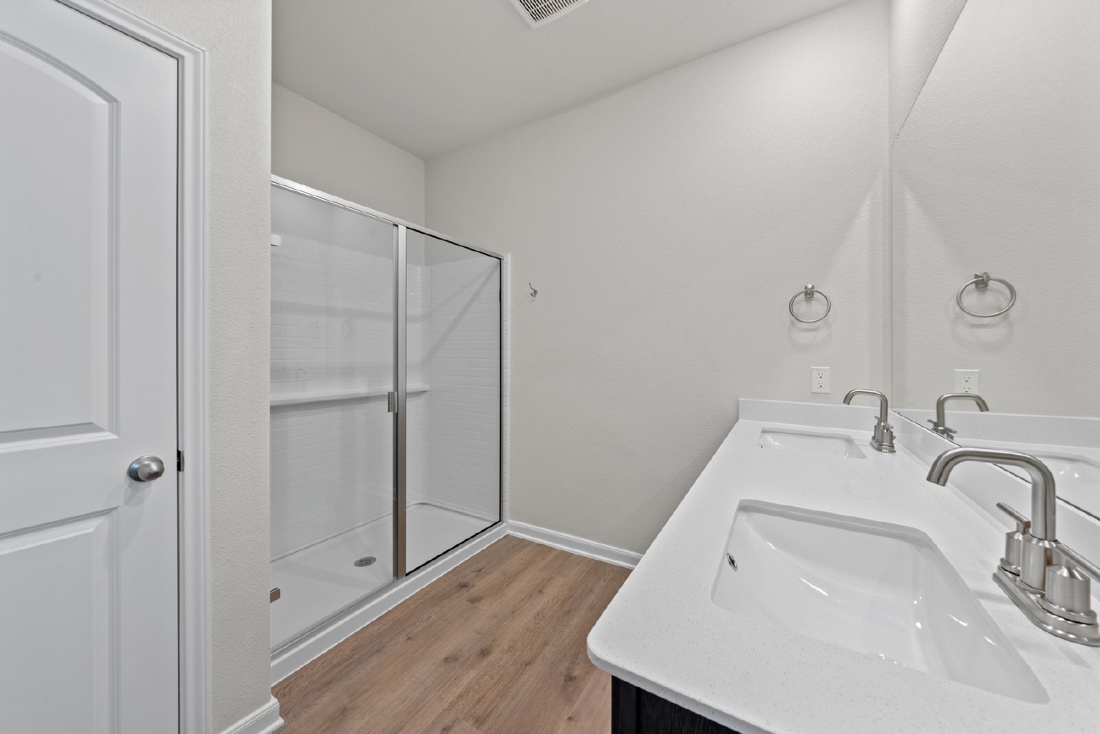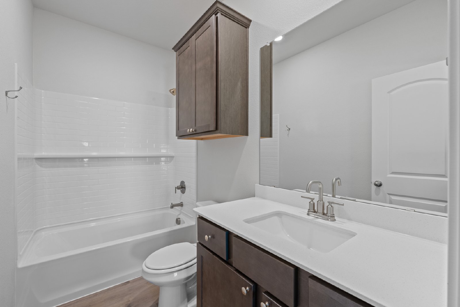 The master suite in the Tulip is a private retreat, featuring large windows that fill the room with natural light. The attached en-suite bathroom boasts dual sinks, a walk-in shower, and a large walk-in closet for ample storage. With two additional bedrooms and a second bathroom, this home is ideal for families or those needing extra space while leasing at Southaven.