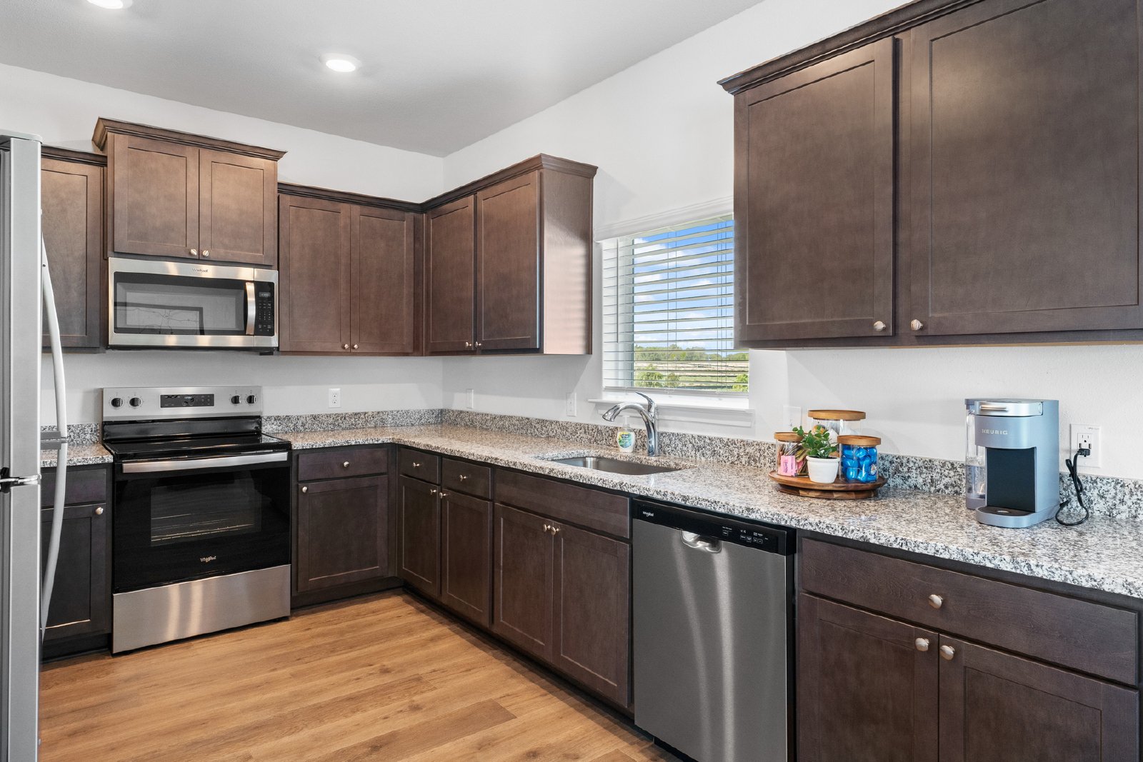 The Tulip floor plan at Southaven by LGI Living is available for lease, offering a spacious 1,629 sq. ft. single-story layout with three generously sized bedrooms and two bathrooms. Designed for modern living, the open floor plan connects the living, dining, and kitchen areas, making it perfect for entertaining and everyday family life. The kitchen is equipped with beautiful wood cabinetry, sleek granite countertops, and a full suite of energy-efficient stainless steel appliances, providing both style and functionality for all your cooking needs.