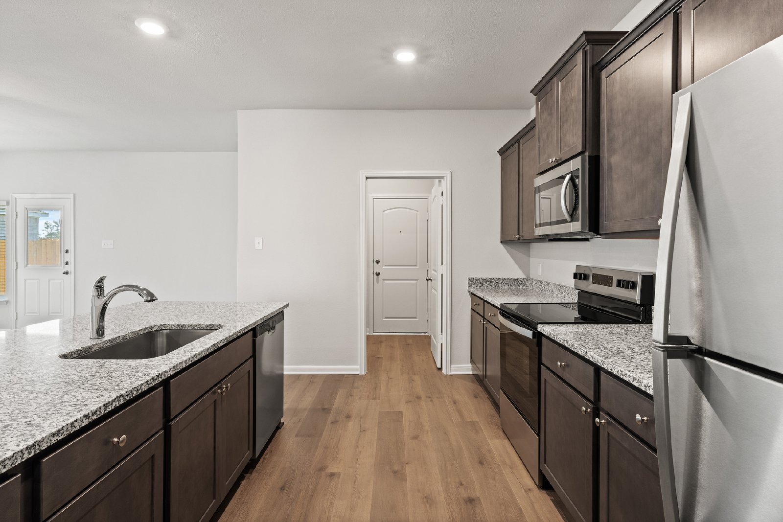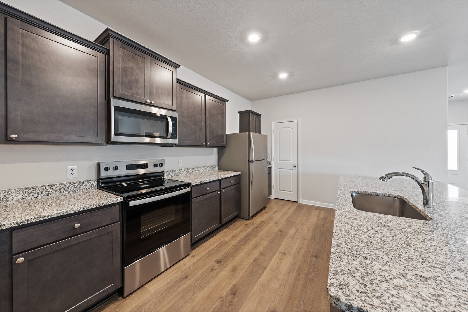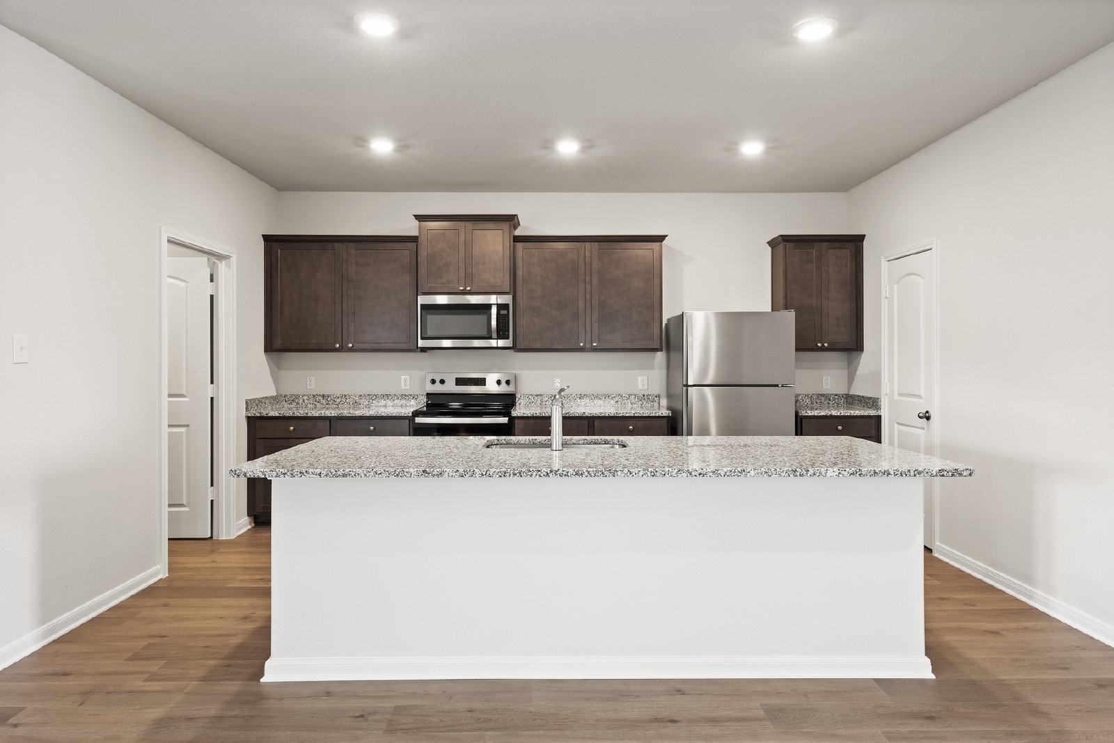 The Dogwood floor plan at Southaven by LGI Living is available for lease, offering a spacious and functional 1,932 sq. ft. layout with two stories, four bedrooms, and two-and-a-half bathrooms. Perfect for families or those needing extra room, this home features an open-concept design that seamlessly connects the living, dining, and kitchen areas, ideal for entertaining or day-to-day living. The chef-ready kitchen boasts modern wood cabinetry, sleek granite countertops, and energy-efficient stainless steel appliances, making meal prep both stylish and convenient.