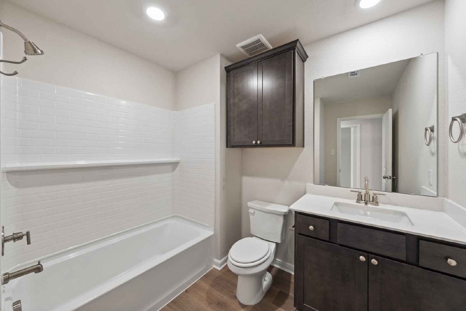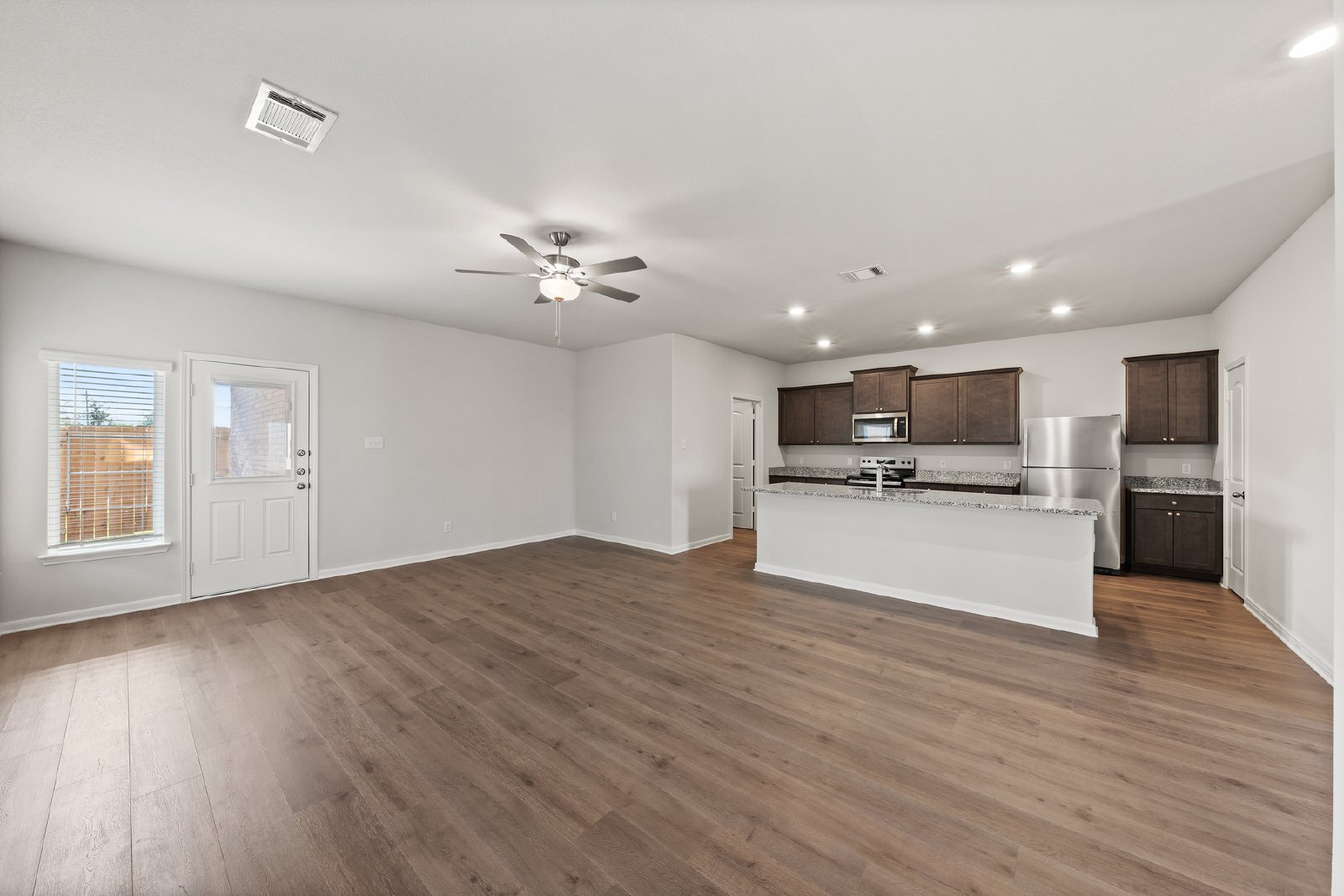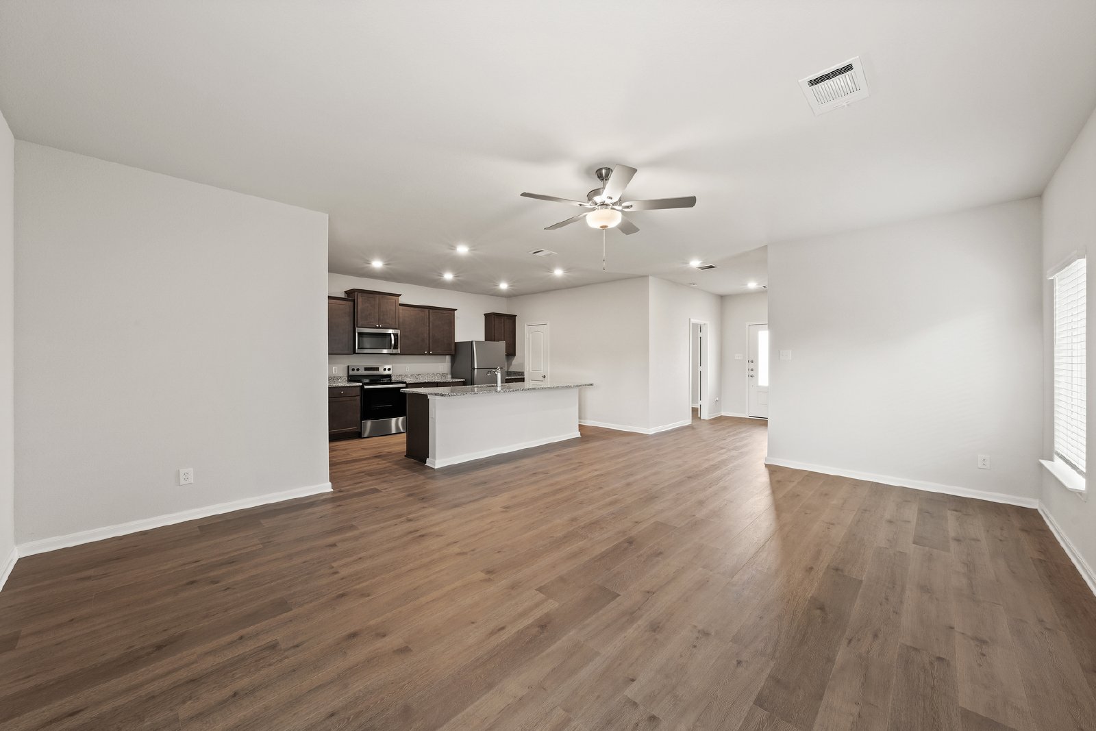 The Dogwood floor plan at Southaven by LGI Living is available for lease, offering a spacious and functional 1,932 sq. ft. layout with two stories, four bedrooms, and two-and-a-half bathrooms. Perfect for families or those needing extra room, this home features an open-concept design that seamlessly connects the living, dining, and kitchen areas, ideal for entertaining or day-to-day living. The chef-ready kitchen boasts modern wood cabinetry, sleek granite countertops, and energy-efficient stainless steel appliances, making meal prep both stylish and convenient.