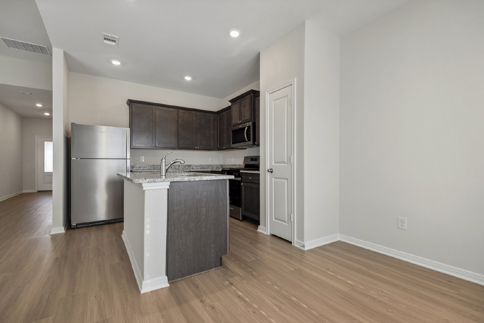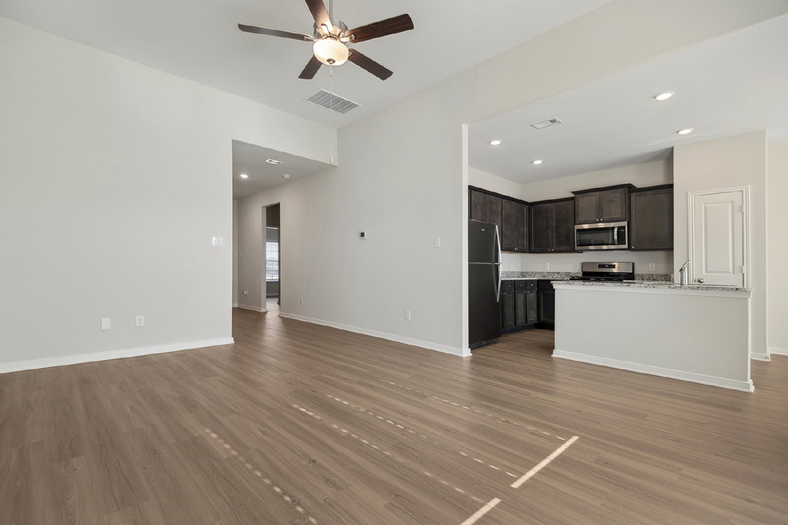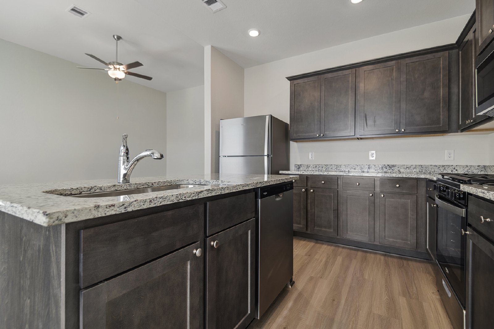 The Bluebird floor plan is a beautiful three-bedroom, two-bath home, offering a blend of high-quality features and upgrades all included. Large windows in every room fill the home with natural light, creating a bright and inviting atmosphere. The open-concept layout provides the perfect space for your family to gather, while the chef-ready kitchen boasts stunning granite countertops, stainless steel appliances and a convenient breakfast bar, making meal preparation and entertaining easy.