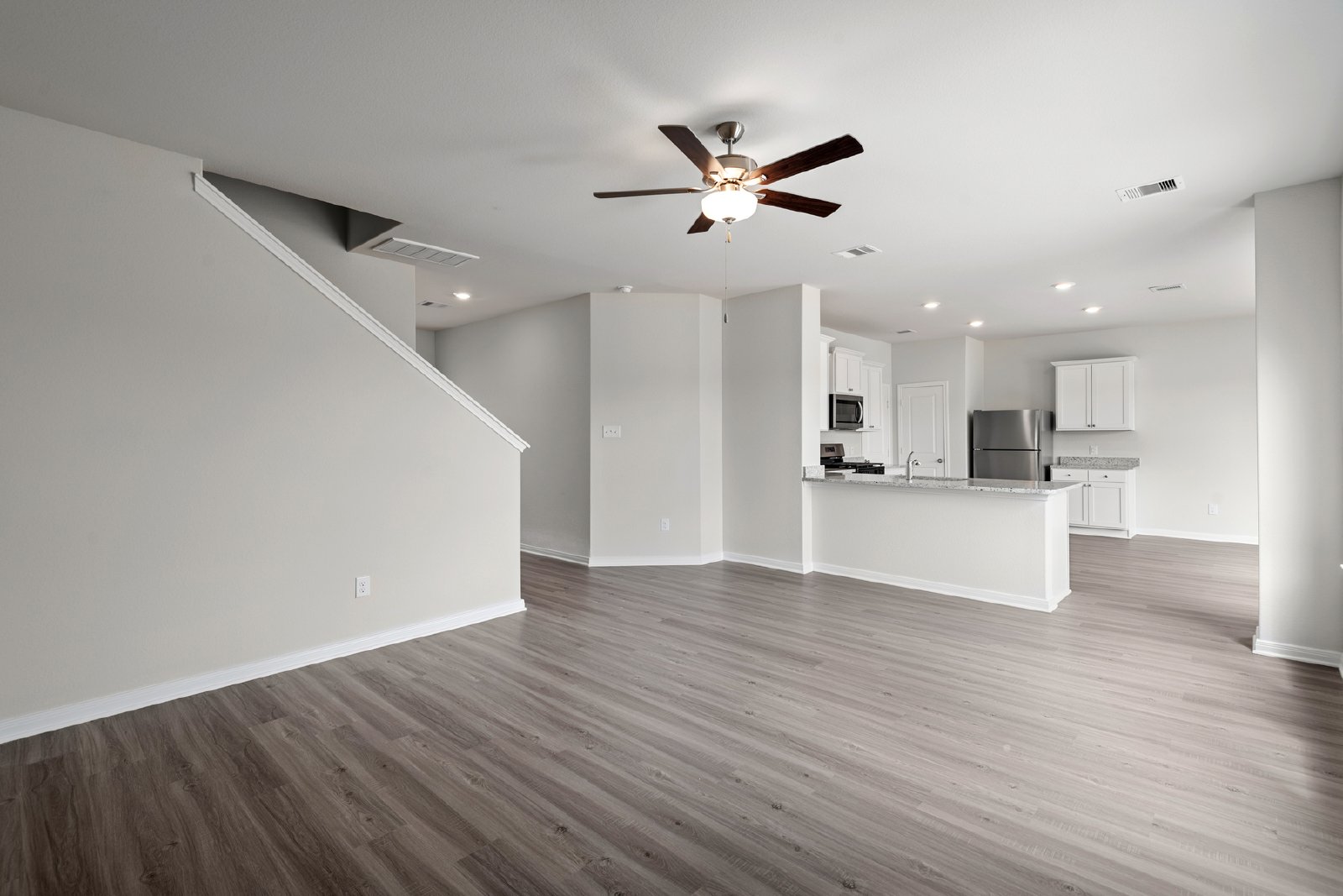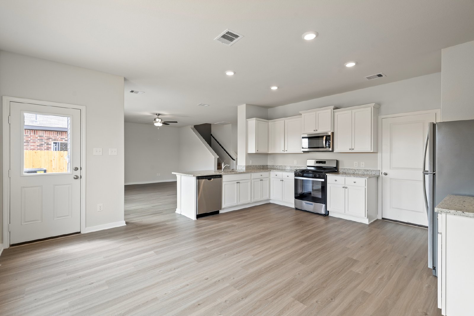 Hosting is made effortless in the Sparrow, with a spacious family room that flows seamlessly into the kitchen and dining areas, creating a welcoming environment for friends and family to gather. Whether it's a lively dinner party or a cozy family meal, the open layout offers plenty of space for everyone to connect and enjoy each other's company. Additional features like a downstairs powder room, storage under the stairs, a large covered front porch, and upgraded appliances add convenience and charm to this home. With its blend of style, functionality, and thoughtful design, the Sparrow floor plan is the perfect option for renters at Freeman Ranch.