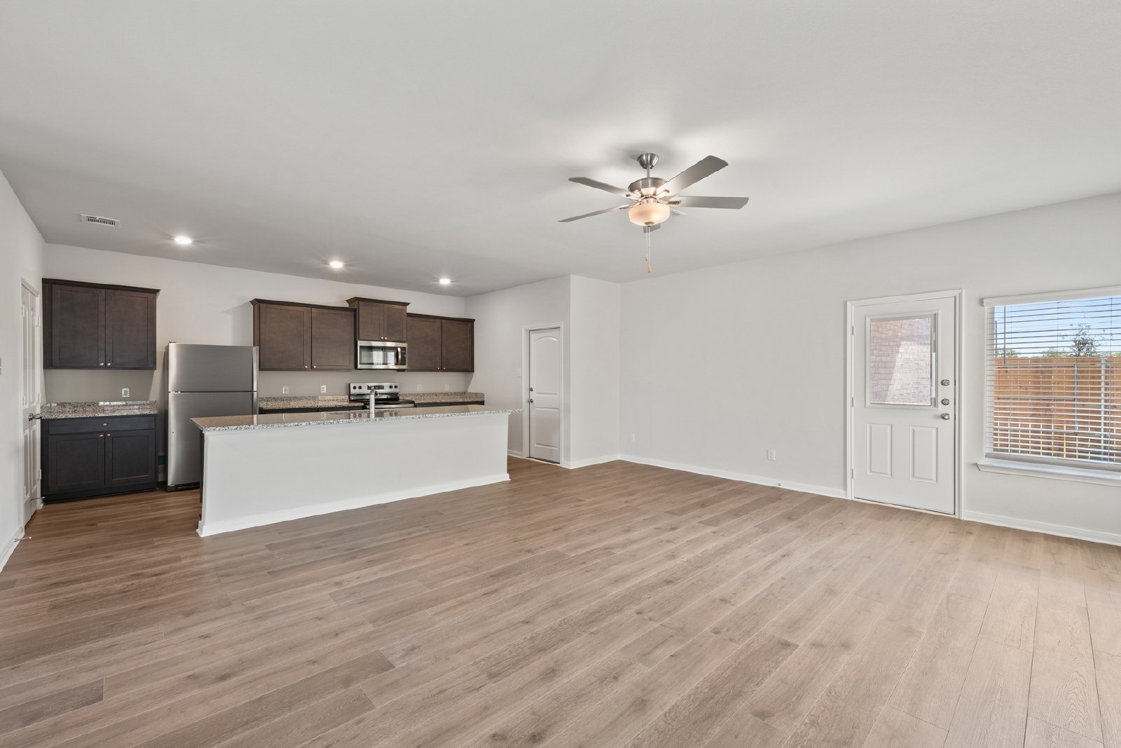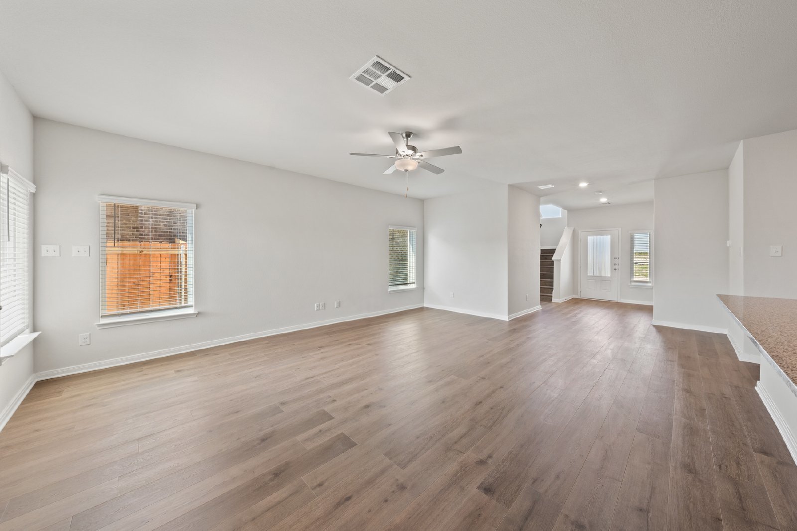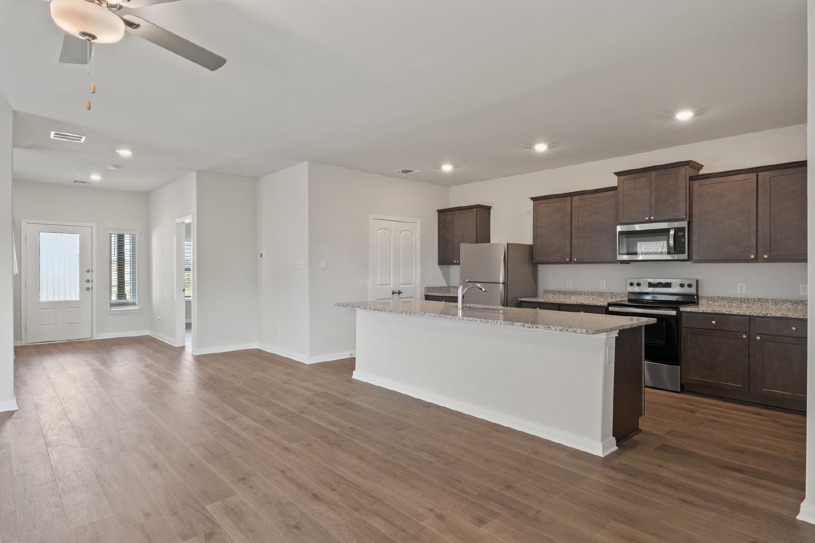 The Azalea floor plan at Southaven by LGI Living is now available for lease, offering an expansive 2,302 sq. ft. of living space, complete with five bedrooms and two-and-a-half bathrooms. Designed for flexibility and comfort, this two-story home features an open-concept layout that connects the spacious living room, dining area, and kitchen. The kitchen is a central hub, equipped with a large island, granite countertops, and energy-efficient stainless steel appliances, making it perfect for family meals and entertaining.