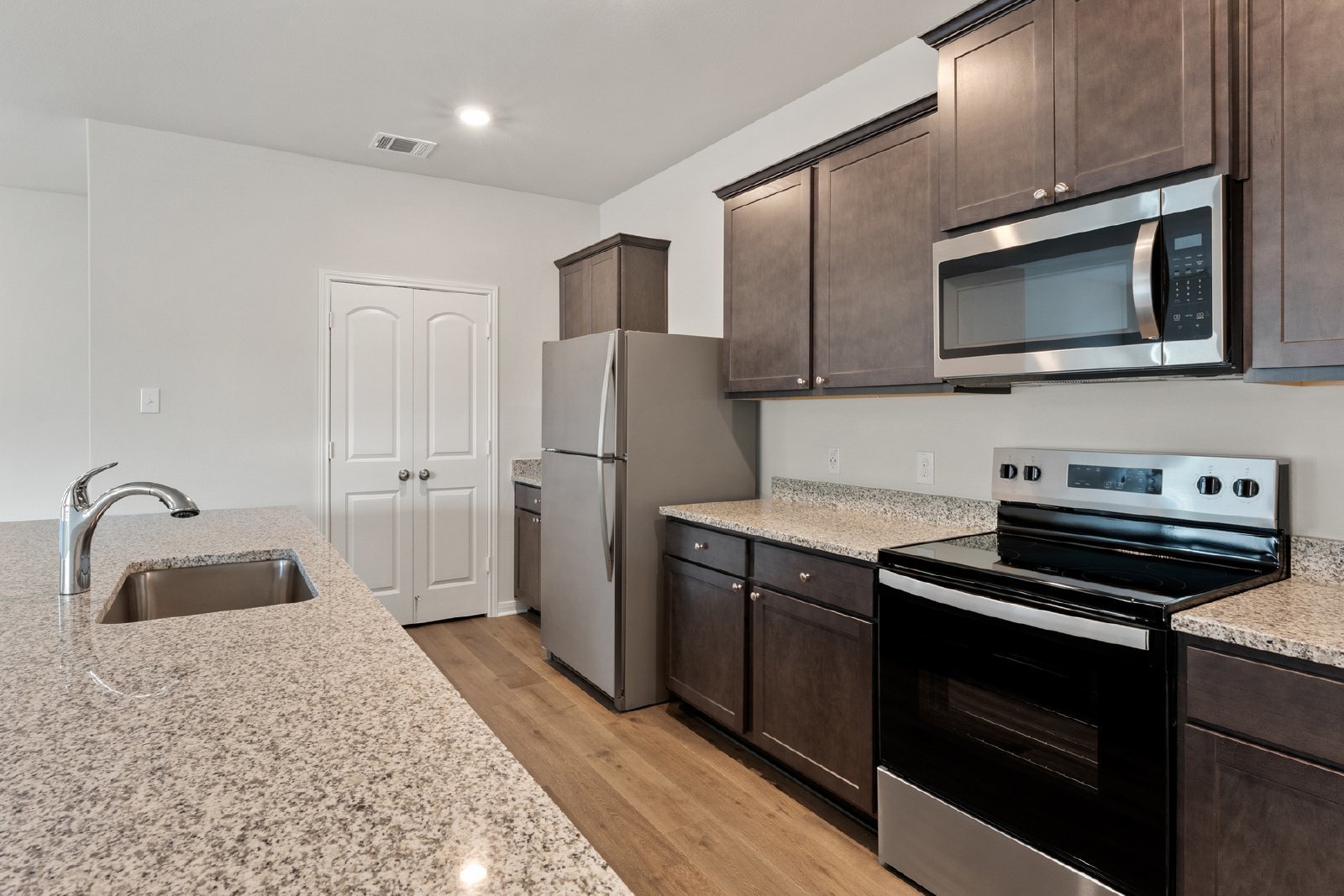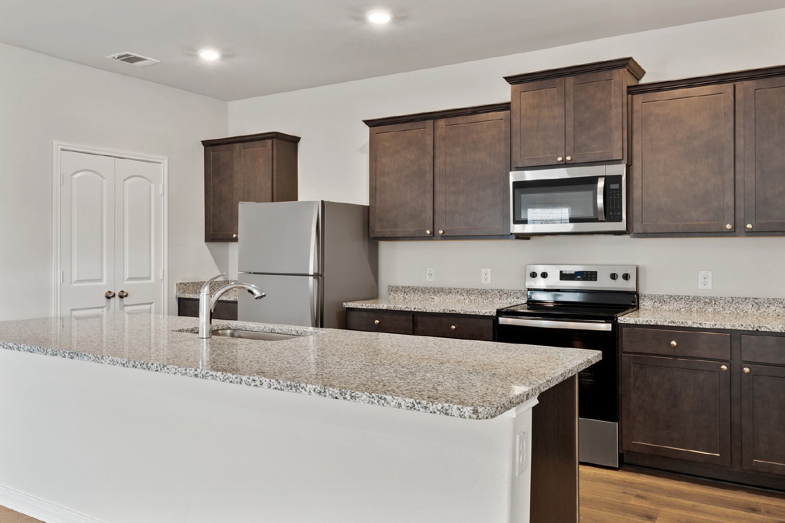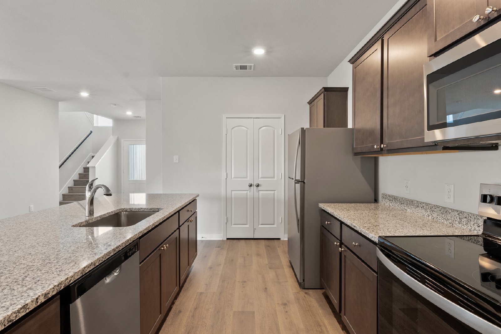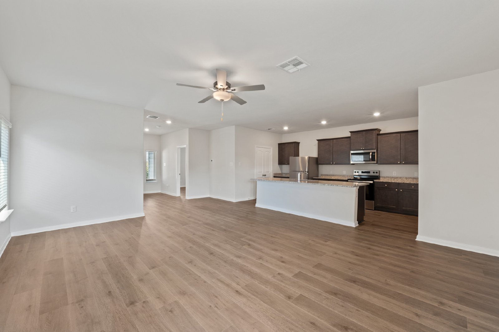The Azalea floor plan at Southaven by LGI Living is now available for lease, offering an expansive 2,302 sq. ft. of living space, complete with five bedrooms and two-and-a-half bathrooms. Designed for flexibility and comfort, this two-story home features an open-concept layout that connects the spacious living room, dining area, and kitchen. The kitchen is a central hub, equipped with a large island, granite countertops, and energy-efficient stainless steel appliances, making it perfect for family meals and entertaining.