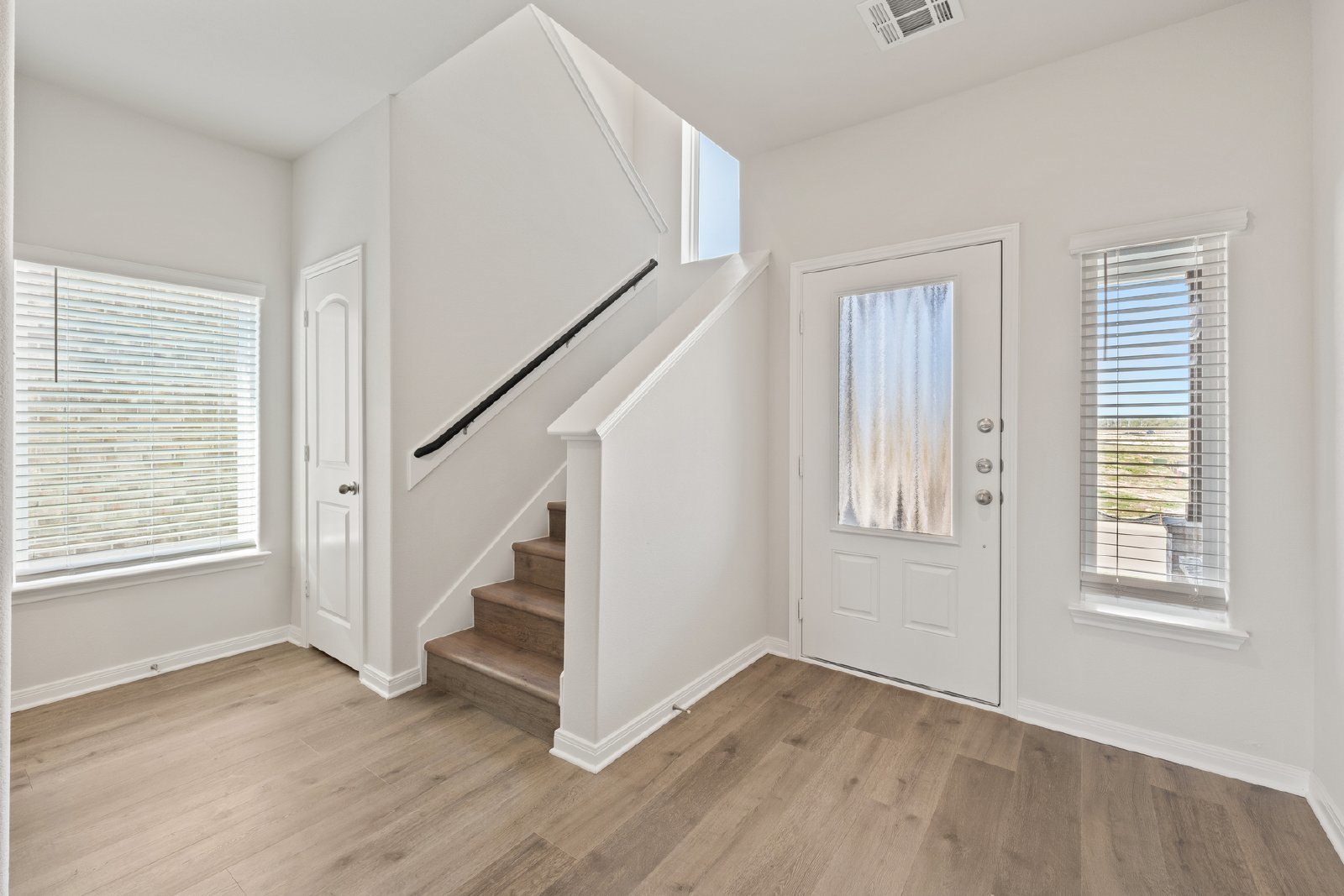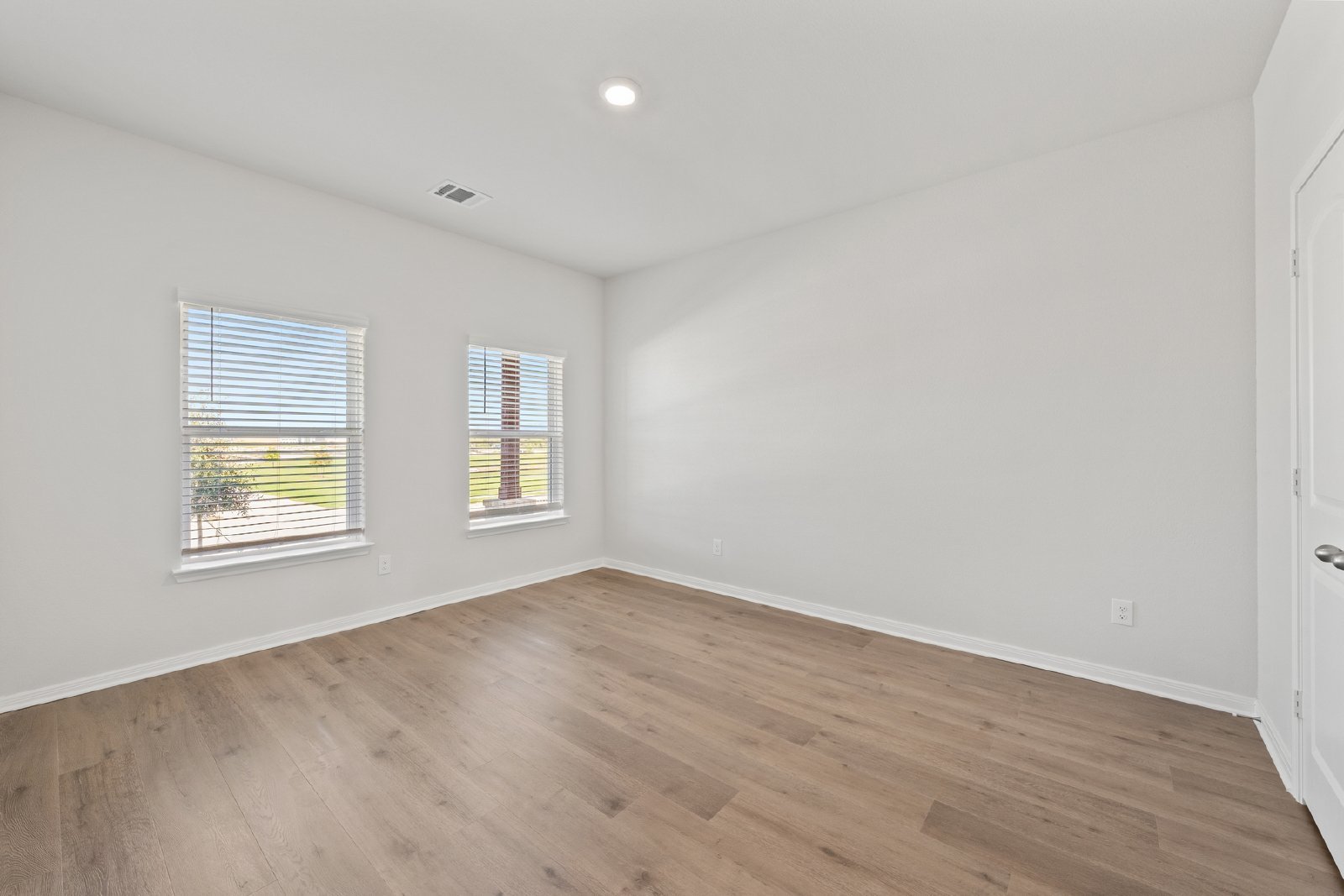 A versatile bedroom on the first floor offers the flexibility to be used as a home office, guest room, or playroom, providing plenty of options to suit your lifestyle. The first floor also features a convenient powder bathroom for guests. Upstairs, the master bedroom stands out with its two sizable walk-in closets and a private en-suite bathroom with dual sinks, ensuring comfort and privacy. The upper floor is also home to three additional bedrooms, ideal for family members or guests, and a shared full bathroom.